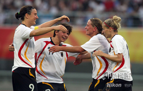 圖:北京奧運(yùn)女足 德國慶祝進(jìn)球