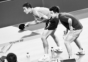 昨天下午,國乒男隊(duì)訓(xùn)練了近兩個小時,比原定計劃多了差不多一小時———當(dāng)然這不是照顧東道主,而是國乒隊(duì)的運(yùn)氣不錯。“我們很幸運(yùn)。下午3點(diǎn)我們正要離開時,發(fā)現(xiàn)有一張空球桌,還可以再訓(xùn)練一小時,所以我們又練了45分鐘。我們練習(xí)了發(fā)球和多回合作戰(zhàn),盡量更適應(yīng)球速和空調(diào)風(fēng)。運(yùn)動員在賽場上精力一般比較集中。我們不進(jìn)行任何針對性練習(xí),只是保證他們狀態(tài)良好和動作流暢。”(孫海光)