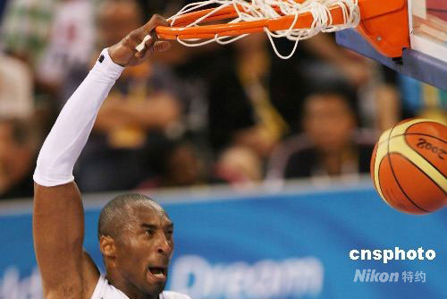 圖:北京奧運會中美男籃大戰 科比大力扣籃