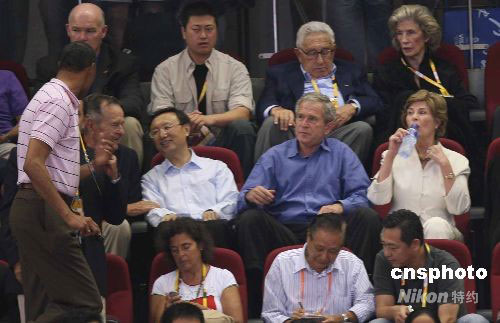 圖:北京奧運會中美男籃大戰 布什父子觀戰