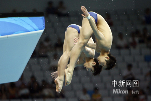 8月11日,中國組合林躍、火亮獲得北京奧運(yùn)會男子10米雙人跳臺冠軍。中新社記者 杜洋 攝