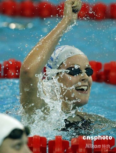 8月11日,在北京奧運會女子200米自由泳預賽中,意大利選手費代麗卡·佩萊格里尼以1分55秒45,破世界紀錄。中新社發 杜洋 攝