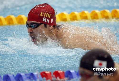 8月12日,中國選手吳鵬以1分54秒93的成績,順利晉級北京奧運會男子200米蝶泳決賽。中新社發 杜洋 攝