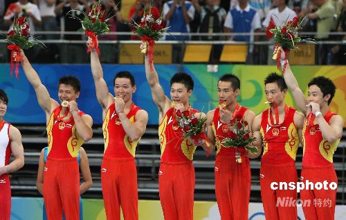 8月12日,在國(guó)家體育館舉行的男子體操團(tuán)體決賽中,中國(guó)隊(duì)以總分286.125分力壓老對(duì)手日本隊(duì),領(lǐng)先第二名7分多的優(yōu)勢(shì)奪得體操男子團(tuán)體的冠軍,為中國(guó)體操隊(duì)贏得了開門紅,這是中國(guó)代表團(tuán)在本屆奧運(yùn)會(huì)上的第10枚金牌。 中新社發(fā) 武仲林 攝