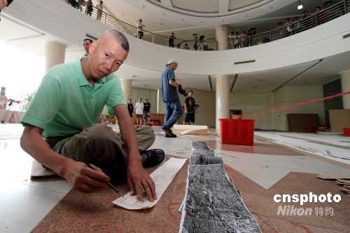 八月十二日上午,世界著名華裔藝術(shù)家、北京奧運(yùn)會(huì)視覺特效藝術(shù)總設(shè)計(jì)蔡國強(qiáng)先生在福建泉州準(zhǔn)備他的又一新作。這次蔡國強(qiáng)要把在北京奧運(yùn)會(huì)開幕式上令世界人民印象深刻的古今同步、跨越時(shí)空“二十九個(gè)腳印”呈現(xiàn)在家鄉(xiāng)人面前。中新社發(fā) 傅丹丹 攝