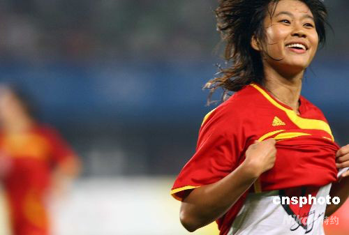 8月12日晚,奧運女足小組賽第三輪賽事展開,中國女足對陣阿根廷隊。第50分鐘,中國隊右路起球,阿根廷門將出擊失誤沒摘到球,韓端與對方防守球員碰撞中把球打進了球門。中新社發 劉新 攝