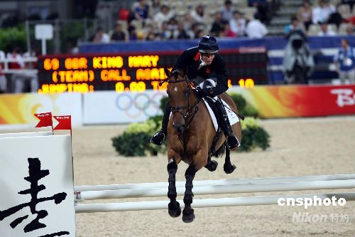 圖為獲得奧運(yùn)馬術(shù)三項(xiàng)賽團(tuán)體賽銅牌的英國選手瑪麗·金飛躍障礙。