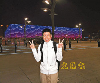 華仔在“水立方”前留影。(圖片來源:文匯報(bào))