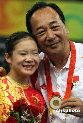 圖:程菲將金牌獻(xiàn)給“總教頭”(4)