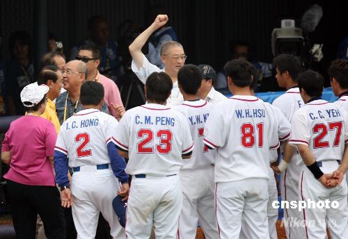 8月13日,中華臺北棒球隊在北京奧運會棒球首場比賽中以5:0戰勝荷蘭隊。中國國民黨主席吳伯雄、親民黨主席宋楚瑜、國民黨秘書長吳敦義等,賽后慰問球員。 中新社發 武仲林 攝