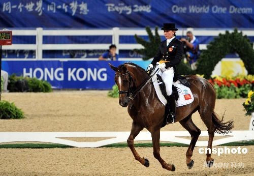 八月十三日晚,中國選手劉麗娜在香港沙田奧運馬術主賽場輕駕坐騎優雅上場,這是中國選手首次參賽奧運會馬術項目。當日,奧運馬術比賽進行盛裝舞步團體賽和個人資格賽(大獎賽科目)進行首日賽事。中新社發 洪少葵 攝