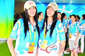 易茗說,之所以看好她們,是因?yàn)榻忝脗z的笑容很純很有特色,符合奧組委的選拔要求。由于是雙胞胎,姐妹倆心靈相通,做起事來(lái)靈氣十足。在易茗的印象里,她們是禮儀小姐中的特例,“她們當(dāng)中大多數(shù)是在校的大學(xué)生,還沒走上社會(huì),她們兩姐妹能舍棄很多東西做志愿者很難得!