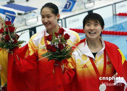 8月14日上午,中國19歲小將劉子歌以2分04秒18打破世界紀(jì)錄,獲得北京奧運會女子200米蝶泳冠軍。另一名中國只有18歲的小將焦劉洋奪得亞軍。中國泳壇兩朵小花雙雙戰(zhàn)勝澳大利亞選手,奪金摘銀。 中新社發(fā) 杜洋 攝
