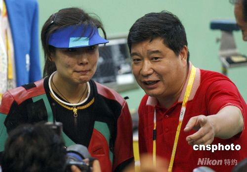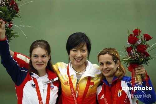 8月14日中午,在北京奧運(yùn)會(huì)女子50米步槍三種姿勢(shì)決賽中,中國(guó)選手杜麗(左)以總分690.3環(huán)創(chuàng)造新的奧運(yùn)會(huì)決賽紀(jì)錄并奪取金牌,為中國(guó)代表團(tuán)在本屆奧運(yùn)會(huì)上贏得第19枚金牌。 中新社發(fā) 盛佳鵬 攝