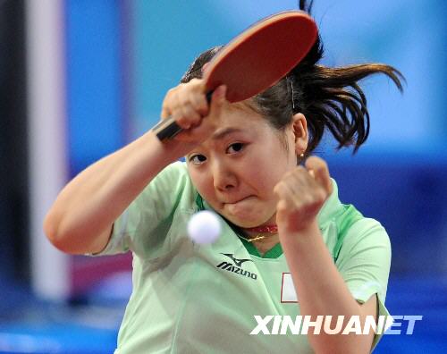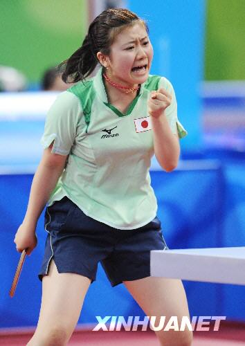 8月14日,在北京奧運會乒乓球女子團體項目小組賽第二輪比賽中,日本隊經過艱難苦戰以3比2戰勝西班牙隊。日本隊主力球員福原愛兩次上場,一勝一負。新華社記者徐家軍攝