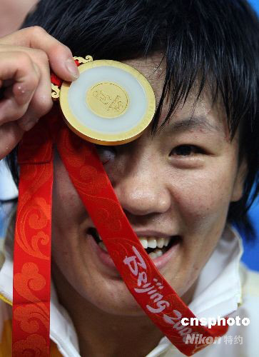 8月14日晚,中國女子柔道名將楊秀麗在北京奧運(yùn)會(huì)女子柔道78公斤級(jí)決賽中擊敗古巴名將亞倫妮斯·卡斯蒂略獲得冠軍,將金牌收入囊中。中新社發(fā) 任晨鳴 攝