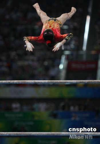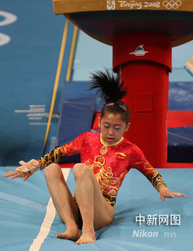 8月15日,中國選手江鈺源在北京奧運會體操女子個人全能決賽中僅列第五名,與獎牌無緣。 中新社發 武仲林 攝