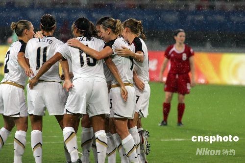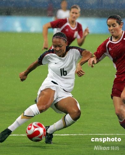 8月15日,北京奧運會女足,美國VS加拿大的比賽在上海體育場進行。最終,美國隊以2:1戰勝加拿大隊,挺進四強。中新社發 湯彥俊 攝