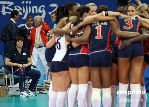 賽后,美國隊(duì)熱烈慶祝時,主教練郎平沉默地坐在一旁。