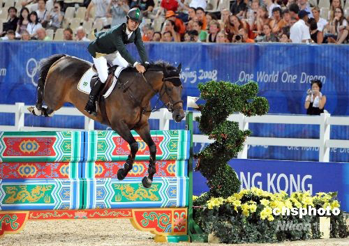 八月十五日晚,奧運馬術在香港沙田舉行場地障礙個人賽及團體賽的第一輪資格賽。雅典奧運金牌得主巴西選手羅德里戈·佩索阿與坐騎“魯弗斯”在地障礙賽上登場。中新社發 鄧慶樂 攝