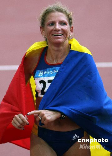 8月17日上午,羅馬尼亞選手康斯坦丁那·托梅斯庫(kù)·迪塔在北京奧運(yùn)會(huì)女子馬拉松比賽中,以2小時(shí)26分44秒的成績(jī)獲得冠軍,并打破奧運(yùn)會(huì)紀(jì)錄。 中新社發(fā) 任晨鳴 攝