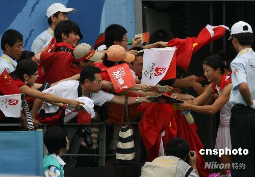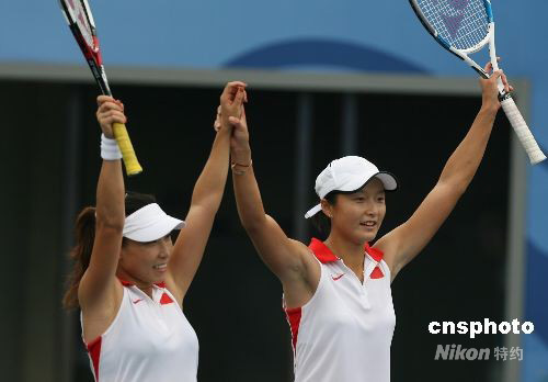 8月17日,中國選手鄭潔、晏紫在北京奧運會網球女子雙打比賽中戰勝烏克蘭組合,奪得銅牌。 中新社發 武仲林 攝