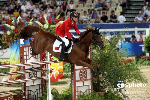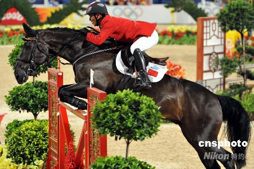 八月十七日晚,北京奧運馬術在香港沙田賽場舉行場地障礙賽團體賽決賽(第一輪)賽事及場地障礙個人賽(第二輪)資格賽。 中新社發 鄧慶樂 攝