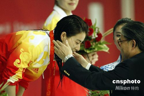 中國選手郭晶晶在北京奧運(yùn)會(huì)女子3米板決賽中獲得金牌。