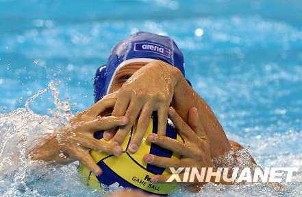 8月18日,在北京奧運會男子水球預賽中,意大利隊以13比12戰勝塞爾維亞隊,意大利隊球員萊奧納爾多·賓基試圖從對手手中搶球,這樣出現了三只手在搶球。新華社記者王慶欽攝