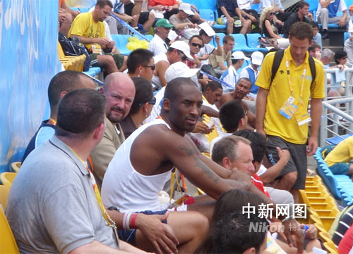 那天早上,我去VIP區協調工作,與國際排聯的兩個官員交流,并沒有想到會有什么特別的。應他們的要求,我來到后排,與他們的上級主管溝通。這時我抬起頭,無意間看見一位身穿紅色T恤的“黑哥們”坐在眼前。我瞬時反應過來——是NBA巨星科比!沒錯,就是他!