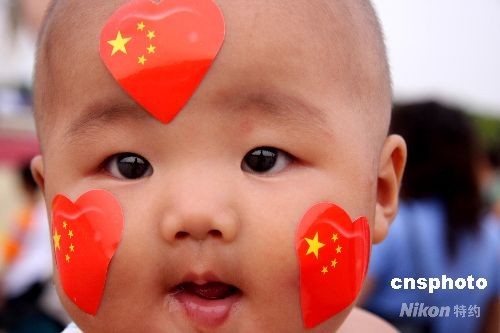 第29屆奧運(yùn)會(huì)在北京舉辦,天安門廣場(chǎng)吸引了眾多國(guó)內(nèi)外游客 ,四個(gè)月的小嬰兒在母親懷抱里綻放出天使般的笑容。中新社發(fā) 張愛(ài)東 攝