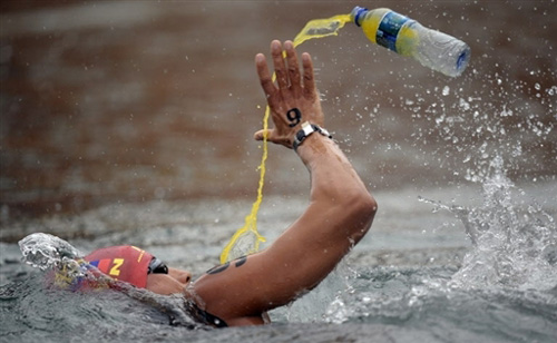 8月21日,北京奧運會男子10公里馬拉松游泳項目進行。在比賽過程中,參賽選手中途補充水分的方式極為特別。