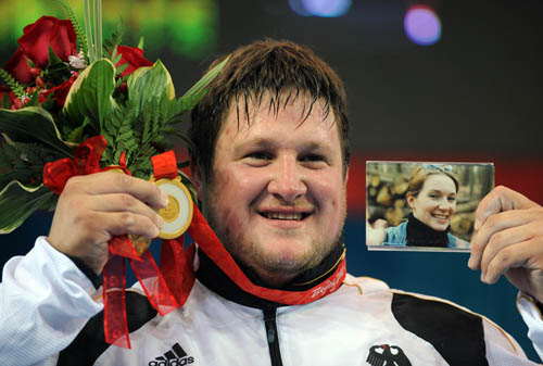 在當天的男子105公斤以上級比賽中,對亡妻的思念幫助這位來自德國的力士完成了驚人的一舉。26歲的馬•施泰納在奪金后激動地表示,他的亡妻蘇珊在比賽中一直陪伴著他,給予他奪金的勇氣。