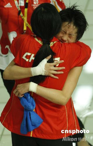 圖:陳若琳與教練相擁慶祝