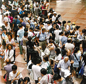 21日早尖沙咀文化中心的輪候人龍達500多人。升讀中四的郝灝揚,20日晚9時在尖沙咀文化中心排隊,“以前試過打電話購票,但電話不通,我擔心買不到門票,所以晚上立即出家門趕到文化中心排隊,想不到會排頭位。”經過整夜守候,郝灝揚最終購得4張大匯演及2張體操表演的門票,他表示十分期待一睹楊威及李小鵬的風采,更笑言為了觀看奧運,暑期功課至今仍未動筆。