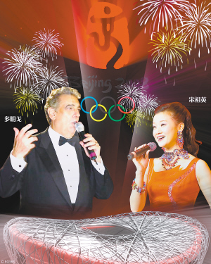 例如,宋祖英與世界著名男高音多明戈的合唱就是中西合璧的一個組合。另外,與開幕式上劉歡、莎拉·布萊曼兩人站在“藍色星球”上靜靜地演唱氛圍不同,宋祖英和多明戈演唱時將會有非常炫彩的伴舞,初定的伴舞風格是云南舞。此外,還會有很多與高科技相結(jié)合的嶄新音樂形式也將給觀眾帶來視聽享受。