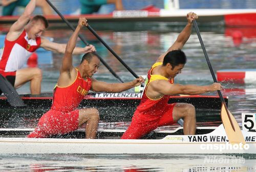 決賽中,他們被分在第五道,身旁分別是德國和俄羅斯組合。順利起航后,孟楊組合在前二百五十米一直占先。后半程,俄羅斯組合沖了上來,一度對(duì)孟楊組合構(gòu)成威脅。