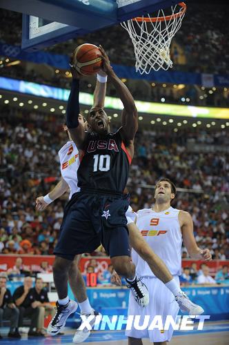 美國隊(duì)球員科比突破上籃。新華社記者 李俊東 攝
