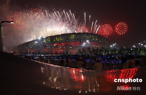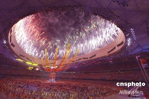 8月24日晚21時45分,北京奧運會閉幕式在奧林匹克公園內的國家體育場上空煙花映照下結束,經歷了激烈鏖戰(zhàn)的世界各地運動員在“鳥巢”內享受歡樂。