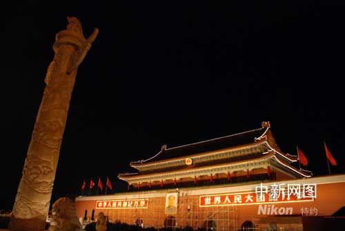 圖:天安門廣場更換主景迎接殘奧會