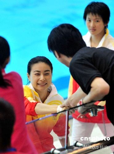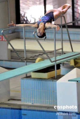 圖為郭晶晶示范三米板跳水。中新社發(fā) 譚達(dá)明 攝