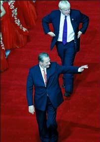 中新網8月31日電 倫敦市長約翰遜為自己在出席北京奧運會閉幕式上的隨意態度作出辯護。由于2012年奧運會將在倫敦舉辦,作為倫敦市長的約翰遜因此在北京奧運會閉幕式上從北京市長郭金龍手中接過了奧林匹克會旗。