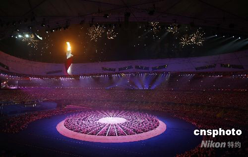 9月6日20時,北京2008年殘奧會開幕式在國家體育場“鳥巢”舉行,中國國家主席胡錦濤,國際殘奧委會主席克雷文先生等出席開幕式。圖為開幕式上的文藝表演。位于體育場中央的巨大舞臺是開幕式的主表演臺,整體造型象征人類的家園——地球,其直徑約72米,可升高隆起5米,由360片組成、共有1440個書頁的板塊具備升降、翻轉(zhuǎn)功能,瞬間可以變幻圖案和色彩。 中新社發(fā) 盛佳鵬 攝