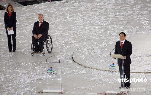 圖:劉淇陪同克雷文到"鳥巢"場地中心講臺致辭(2)