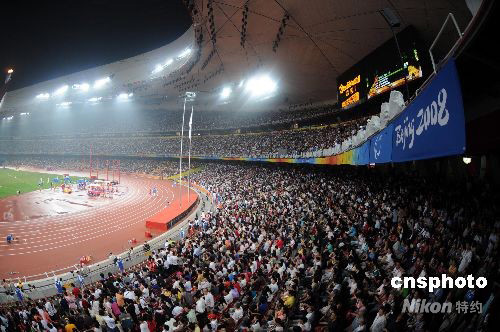 9月9日,數(shù)萬(wàn)觀眾云集“鳥(niǎo)巢”觀看北京殘奧會(huì)田徑比賽。中新社發(fā) 杜洋 攝