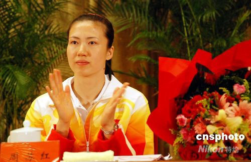 圖:中國女排隊員周蘇紅在報告會上發言