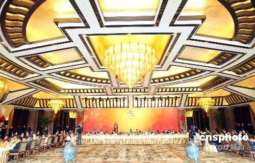 9月17日,中國國家主席胡錦濤與夫人劉永清在北京釣魚臺國賓館芳菲苑舉行宴會歡迎出席北京殘奧會閉幕式的國際貴賓。中新社發 廖文靜 攝