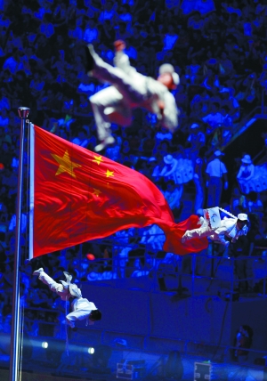 這個節(jié)目叫“寄往未來”,也是殘奧會閉幕式上難度最大、危險性最大的一個,為了完美的呈現(xiàn)出寄往未來的意境,來自河南少林塔溝武校的演員們已經(jīng)練了1年多的時間。