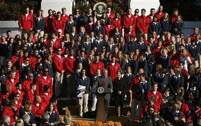 美國總統布什7日在白宮南草坪會見美國奧運和殘奧代表團。