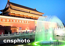 2 北京市政府有關(guān)部門26日透露,為了迎接全國“兩會(huì)”召開,從2003年3月2日至3月19日,北京全市范圍內(nèi)按重大節(jié)日要求開放夜景照明設(shè)施,開燈時(shí)間為每天18時(shí)30分至23時(shí)。圖為天安門夜景。郎從柳 攝